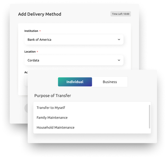 Enable end users to transfer funds across borders with full KYC/AML compliance, real-time transaction tracking, and intuitive UI components. Ideal for fintechs building consumer-facing experiences where speed and trust are paramount.