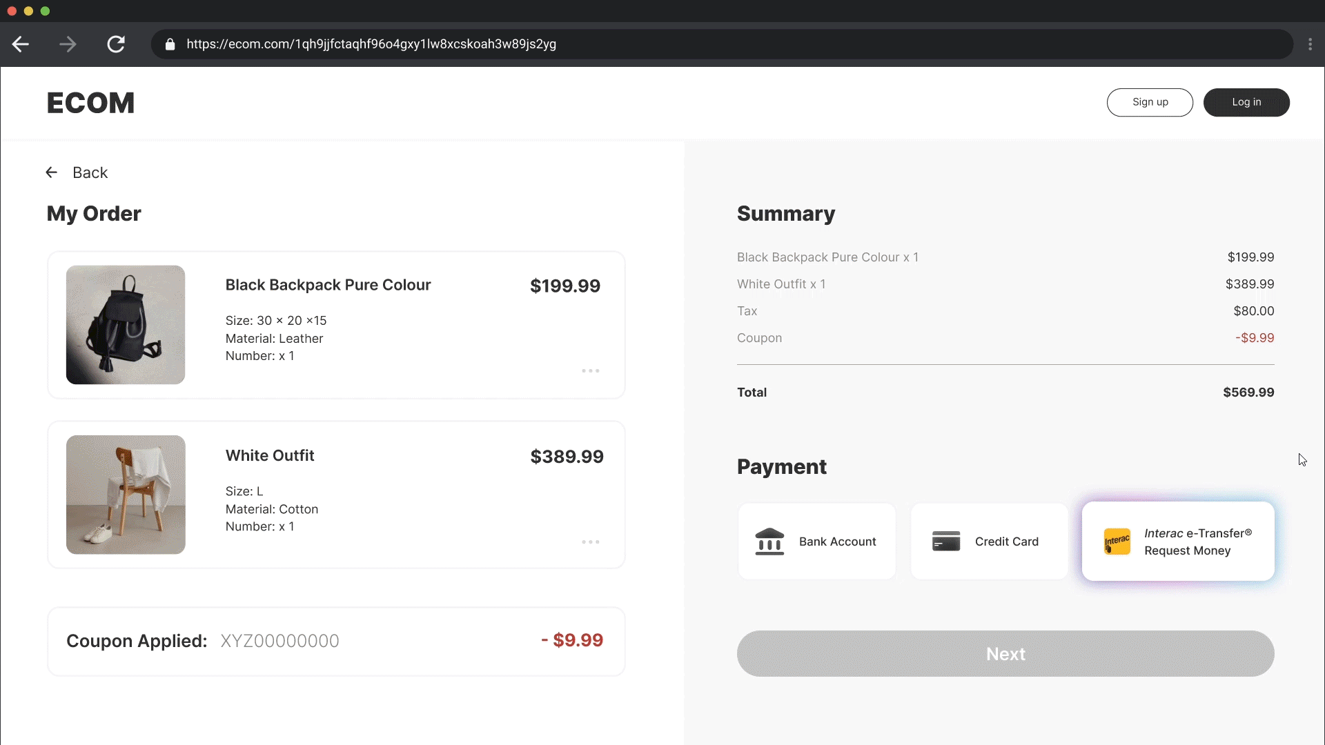 Embed Interac e-Transfer® Request Money directly into your checkout flow to let customers pay without leaving your store or marketplace. Whether you run an online retail brand or a multi-vendor platform, customers can complete secure payments in just a few clicks, right where they shop. This integration creates a polished payment experience that builds trust and keeps transactions fully within your ecosystem.